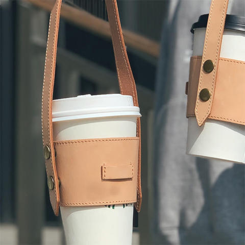 Tùy Chỉnh Da Có Thể Điều Chỉnh Giữ Cốc Tái Sử Dụng Tote Uống Chai Chủ Với Xử Lý Cho Trà Sữa Cà Phê